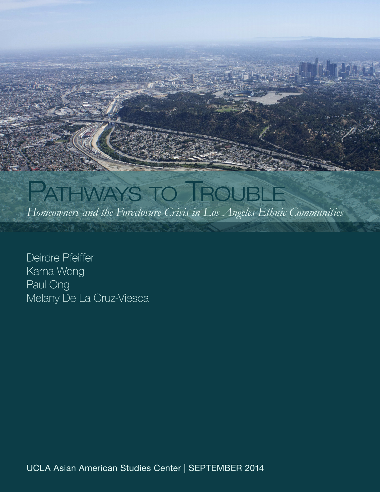 "Pathways to Trouble: Homeowners and the Foreclosure Crisis in Los Angeles Ethnic Communities," a report by the UCLA Asian American Studies Center and UCLA Center for the Study of Inequality examines the diverse circumstances and conditions that shaped homeowners' experiences of default and foreclosure in Los Angeles. The report not only uncovers why immigrants and communities of color were at higher risk of foreclosure, but it also reveals strategies to cope and resolve homeowners' housing and financial issues, which are critical for better understanding the economic mobility of these populations. The report concludes with recommendations to help troubled families and the non-profits that serve them.